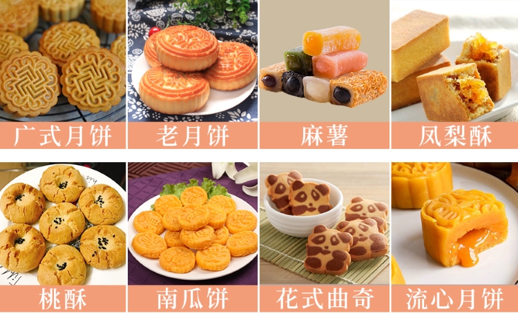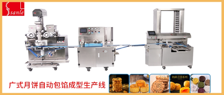 廣式月餅包餡自動(dòng)成型生產(chǎn)線可以生產(chǎn)制作廣式月餅、老月餅、麻薯、鳳梨酥、桃酥、南瓜餅、花式曲奇等產(chǎn)品。