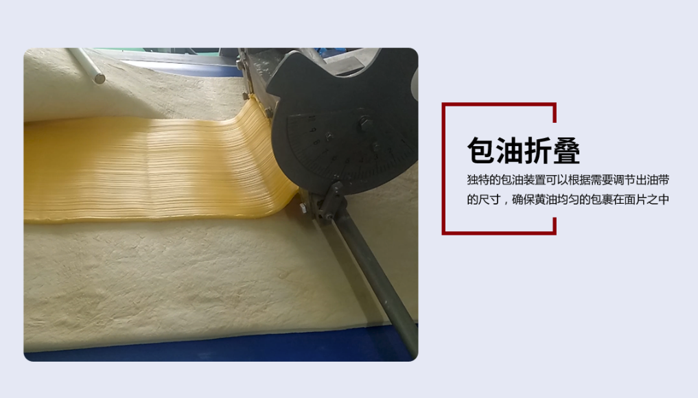 2,包油折疊:獨特的折疊裝置密實均勻的將黃油包裹在面片之中