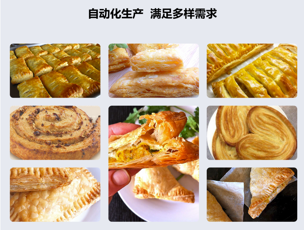 冷凍起酥面塊:ZKS390所產(chǎn)出半成品冷凍起酥面片可用于制作多種起酥食品。